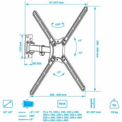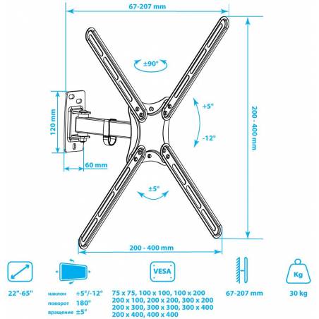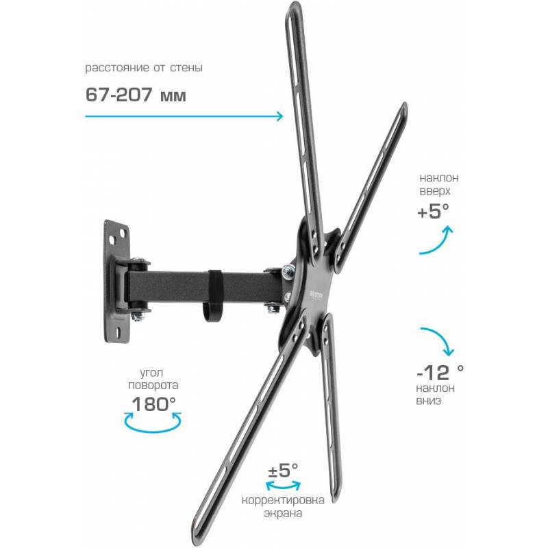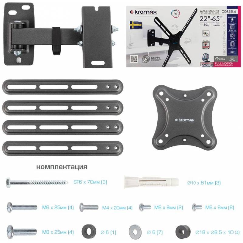 Кронштейн для телевизора Kromax CORBEL-6 черный 22"-65" макс.30кг настенный поворот и наклон