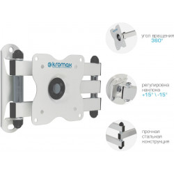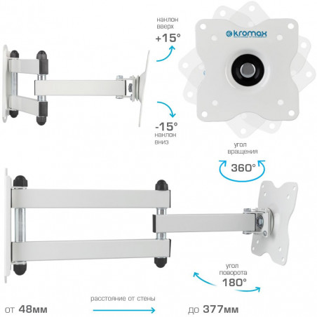 Кронштейн для телевизора Kromax DIX-15W белый 15"-28" макс.30кг настенный поворот и наклон