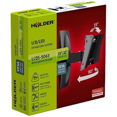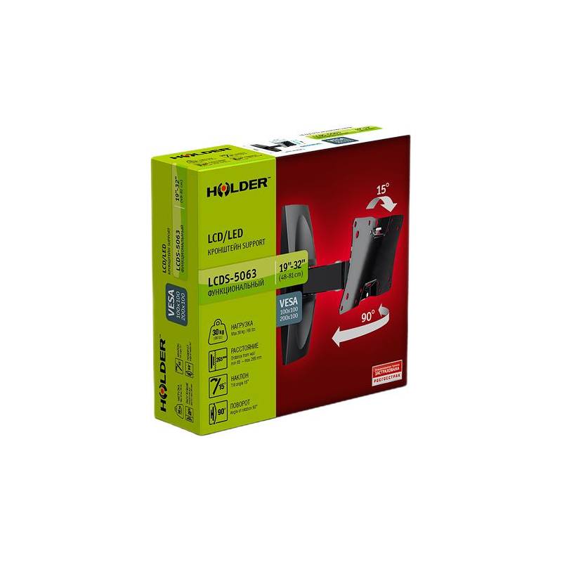 Кронштейн для телевизора Holder LCDS-5063 черный 19"-32" макс.30кг настенный поворот и наклон