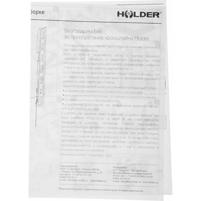Кронштейн для телевизора Holder LCDS-5070 металлик 37"-55" макс.45кг настенный фиксированный
