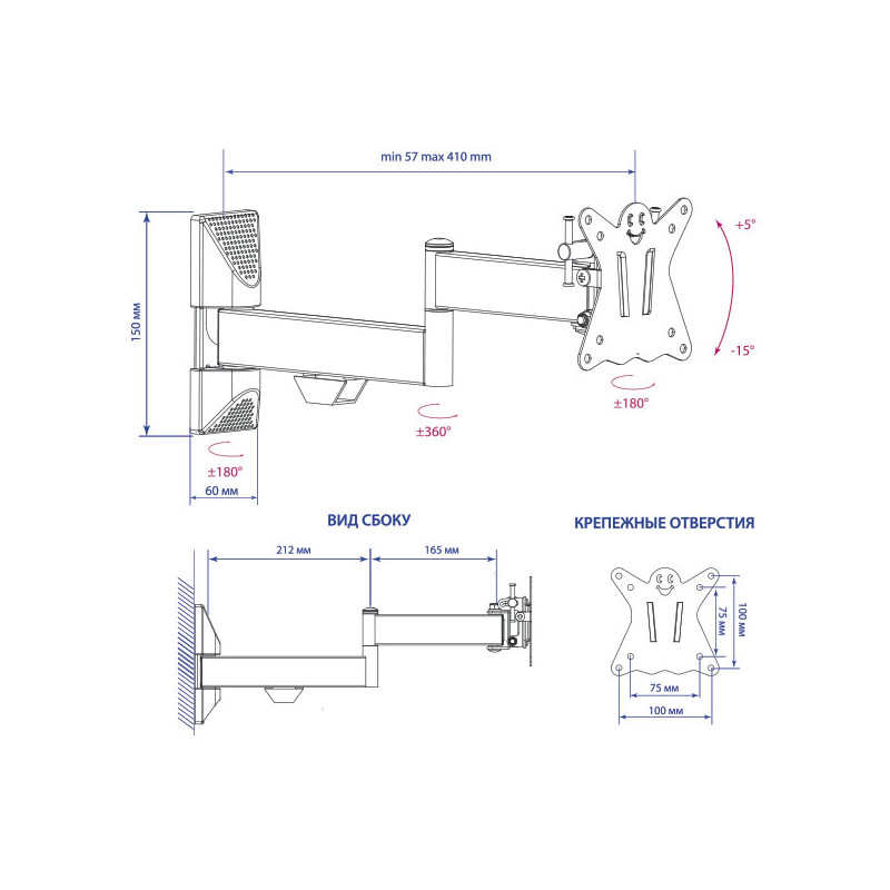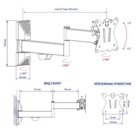 Кронштейн для телевизора Kromax CASPER-104 черный 10"-32" макс.25кг настенный поворот и наклон