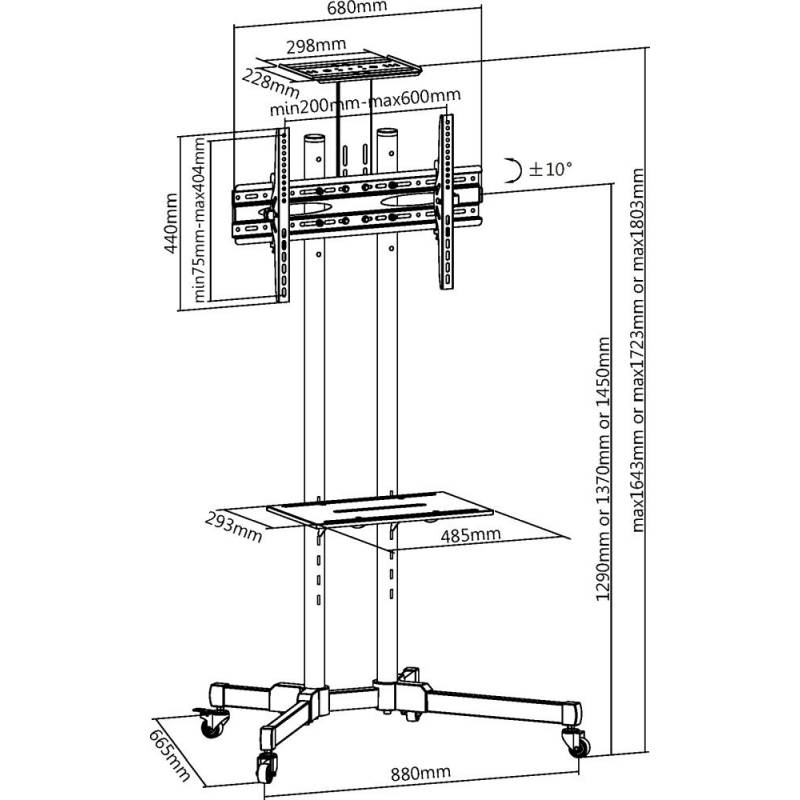 Подставка для телевизора Ultramounts UM262 черный 37"-75" макс.50кг напольный мобильный