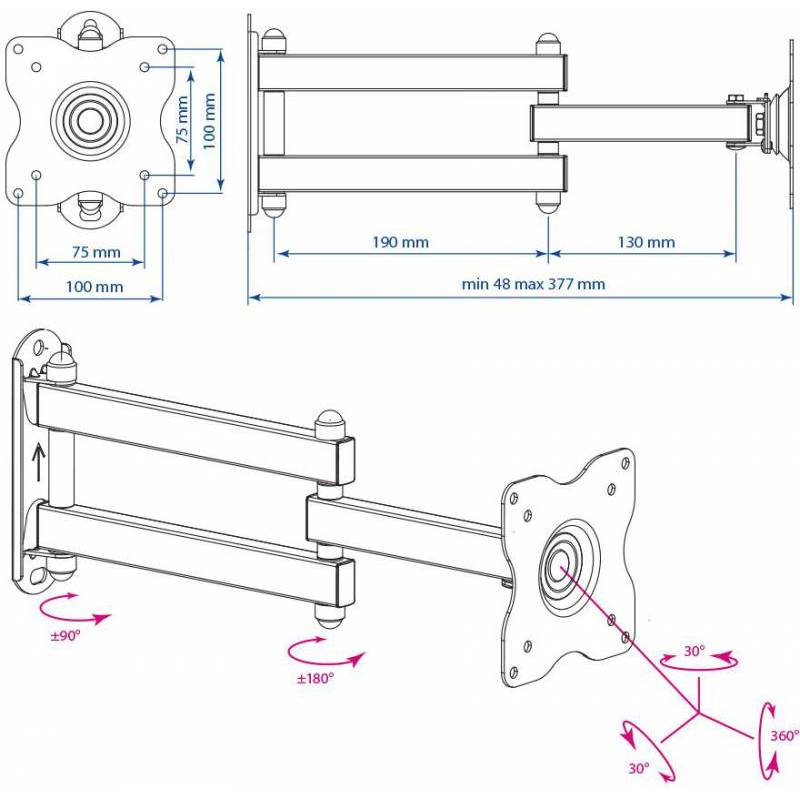 - 3D вращение экрана Съемная монтажная пластина