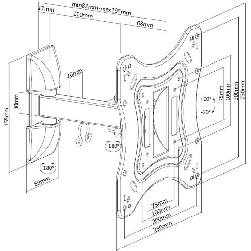 Кронштейн для телевизора Ultramounts UM865 черный 23"-42" макс.20кг настенный поворотно-выдвижной и наклонный