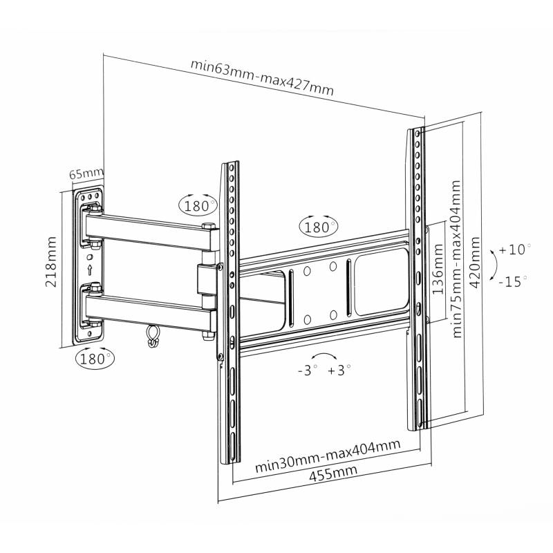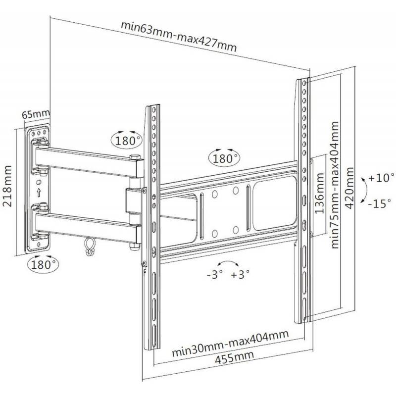Кронштейн для телевизора Ultramounts UM872 черный 32"-55" макс.35кг настенный поворотно-выдвижной и наклонный