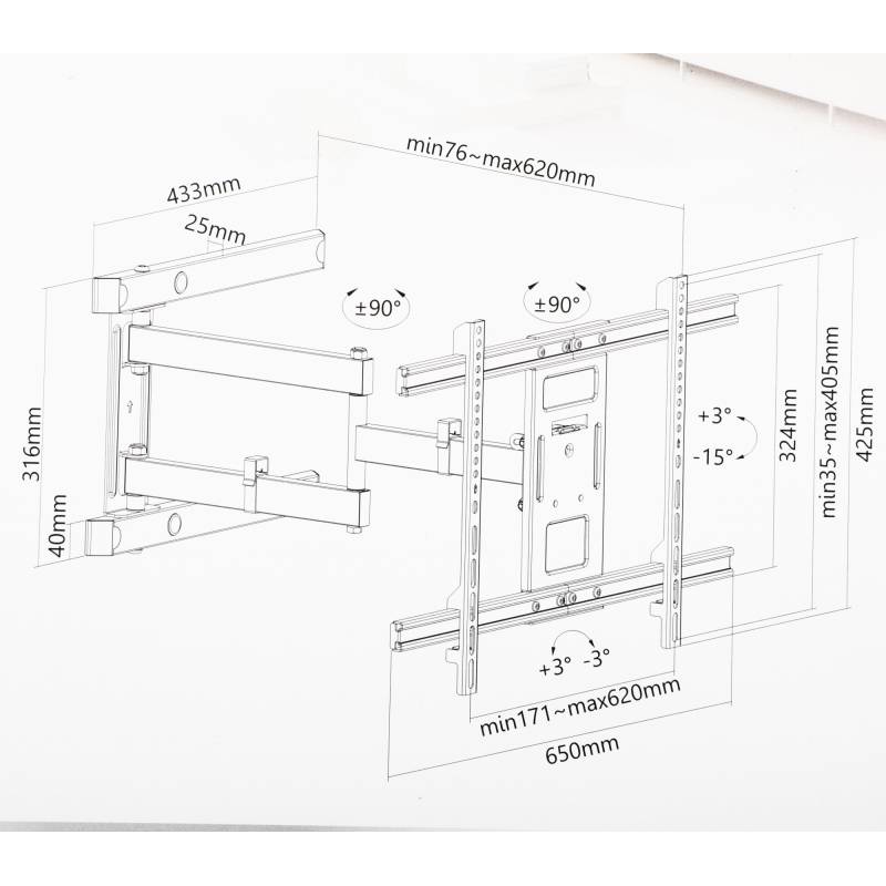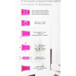 Кронштейн для телевизора Ultramounts UM911 черный 37"-80" макс.50кг настенный поворотно-выдвижной и наклонный