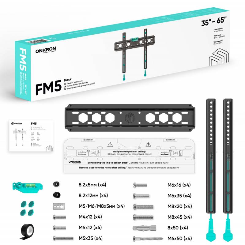 - Настенный кронштейн ONKRON FM5 предназначен для телевизоров с диагональю от 35 до 65 дюймов . Максимальный выдерживаемый вес составляет 57 кг.