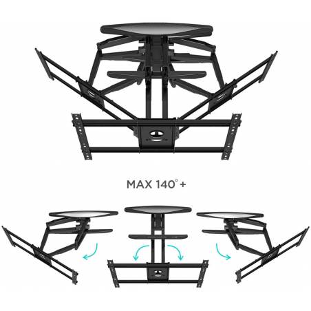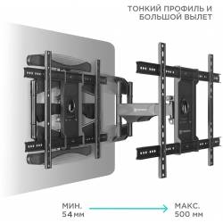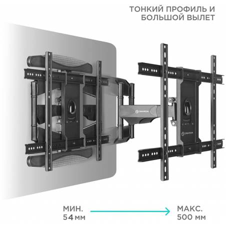 - Универсальное крепление. Система двойного плеча. Кабель-канал. Ультратонкий дизайн и большой вылет от стены. Широкие возможности регулировки экрана.