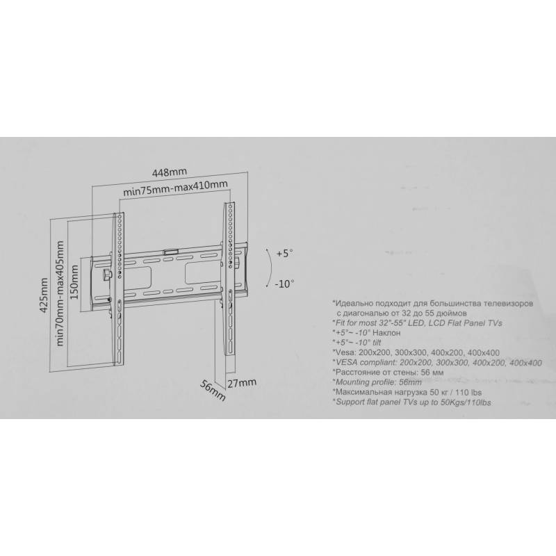Кронштейн для телевизора Ultramounts UM841T черный 32"-55" макс.50кг настенный наклон
