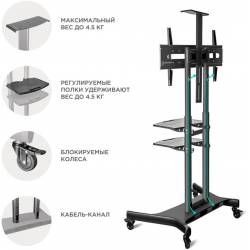 - Различные варианты крепления VESA. Простая и быстрая настройка высоты. Встроенный кабель-канал .Полки для дополнительной техники. Идеальна для экономии места. Надёжные колёса с системой фиксации.