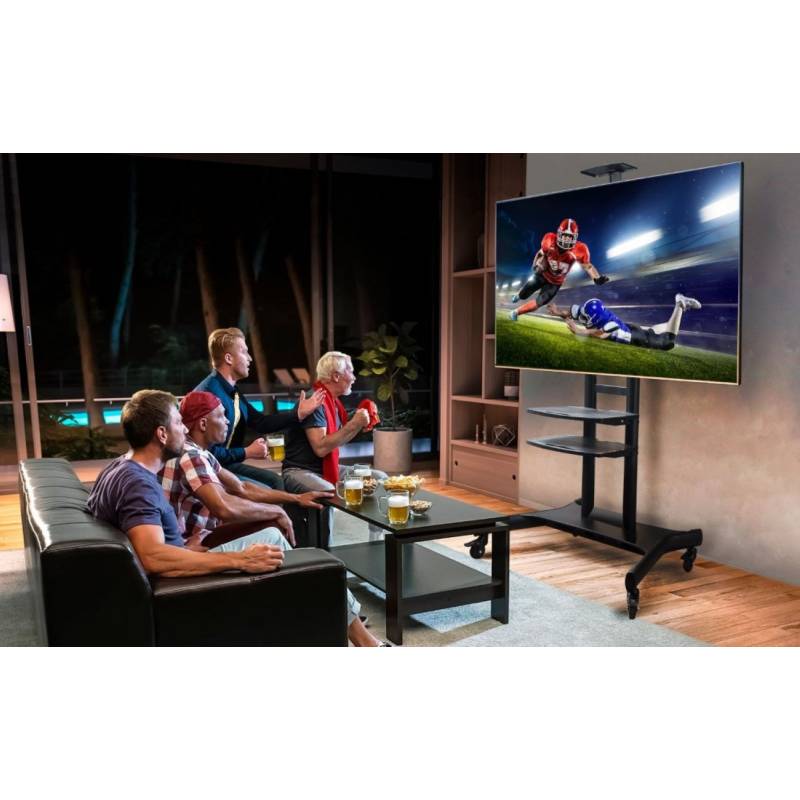 - Мобильная напольная стойка ONKRON TS1881 подходит для телевизоров любых производителей, среди которых SAMSUNG, LG, Xiaomi. Предусмотренная диагональ ТВ – от 50 до 86 дюймов, максимальный вес – 90, 9 кг.