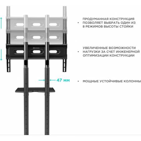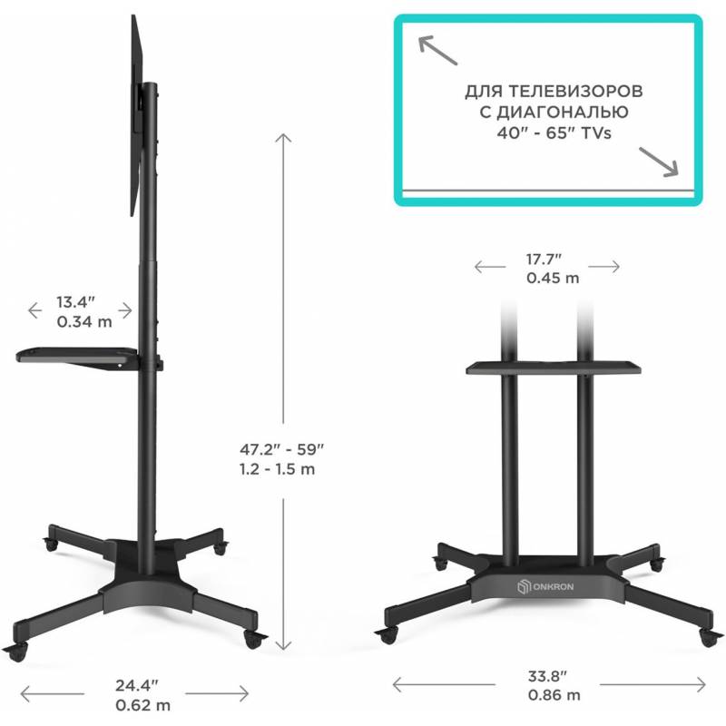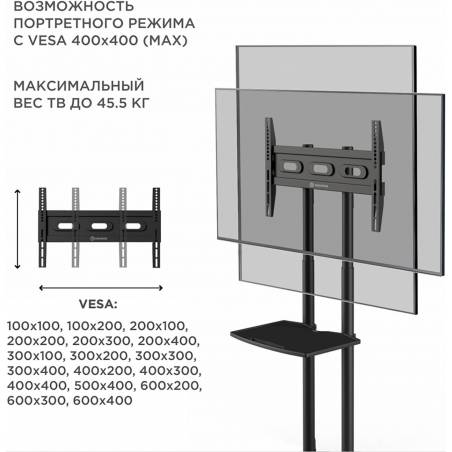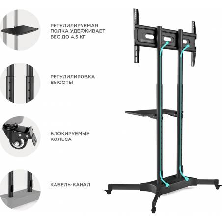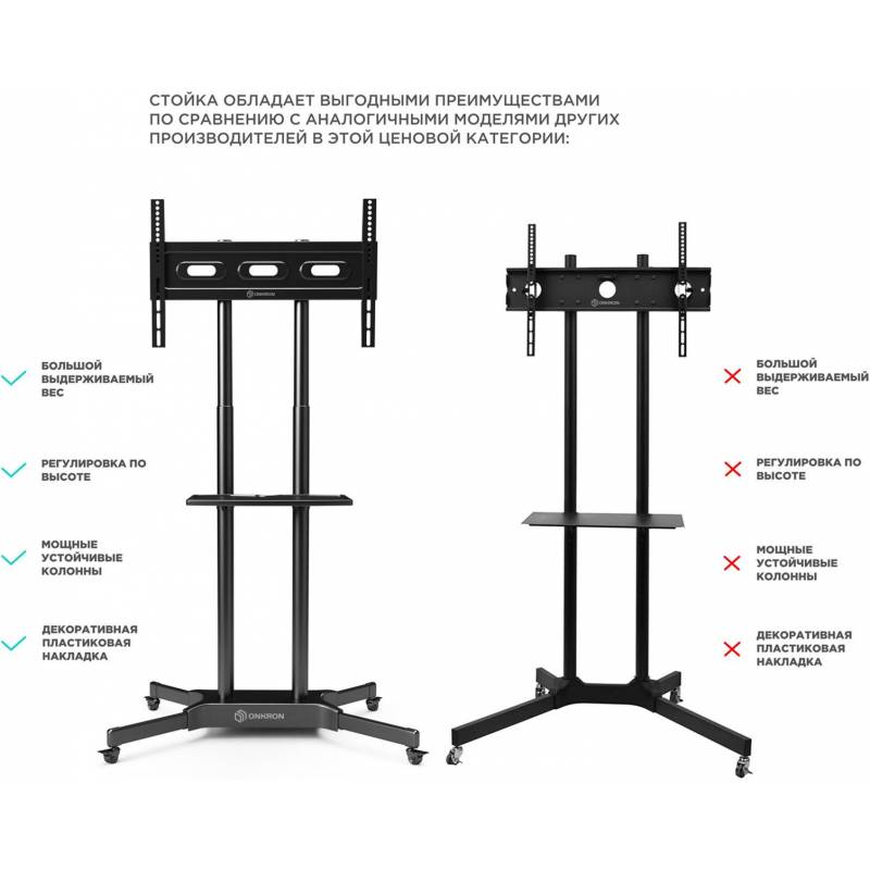 Подставка для телевизора Onkron TS1351 черный 32"-65" макс.50кг напольный мобильный
