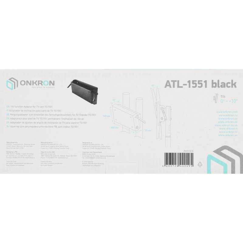 - Тилт-панель ONKRON ATL-1551 подходит для мобильных стоек TS1551 Black, TS1552 Black, TS1552 White, TS1562 Black.