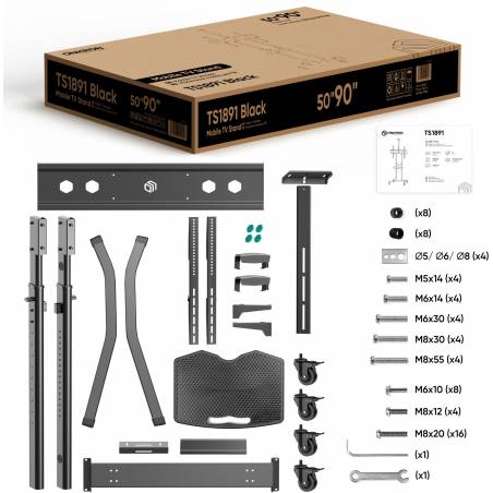 Стойка для телевизора Onkron TS1891 черный 50"-90" макс.100кг напольный мобильный