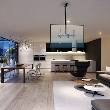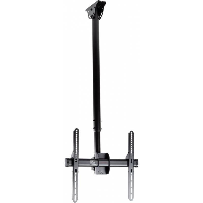 - Потолочный кронштейн для LCD/LED телевизоров размером от 26 до 65 дюймов с максимальным весом до 55 кг. с возможностью крепления на наклонный потолок. Надежная стальная конструкция. Регулировка наклона 0-25 и углом поворота ±180 градусов. Максимальные кре