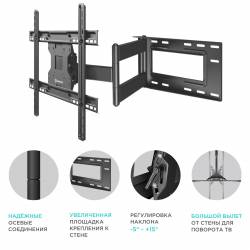 Кронштейн для телевизора Onkron M7L черный 40"-75" макс.68.2кг настенный поворот и наклон