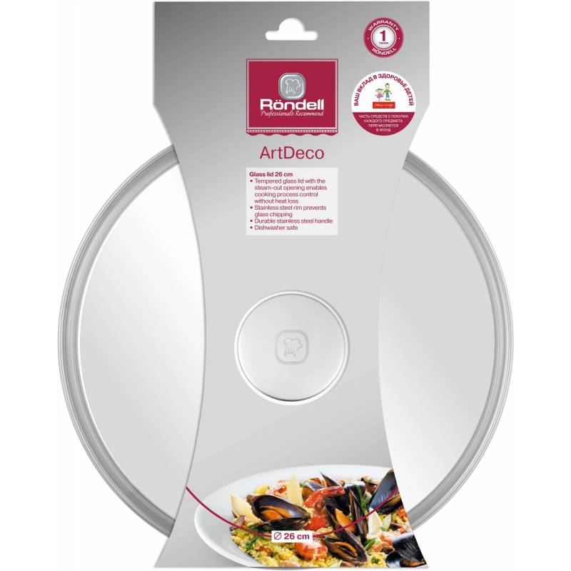 Крышка Rondell ArtDeco RDA-1712 d26см крыш.прозрачный руч.стальная