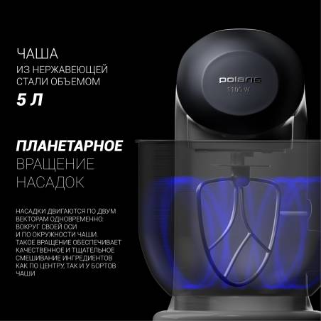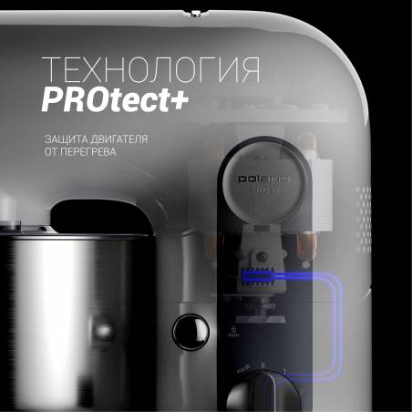 - 5 в 1: Планетарный миксер с 3-мя насадками, Блендер, Мясорубка. Технология SmartMIX - прибор автоматически подбирает оптимальную мощность работы для каждого вида и количества ингредиентов. Технология PROtect+ защита двигателя от перегрева.