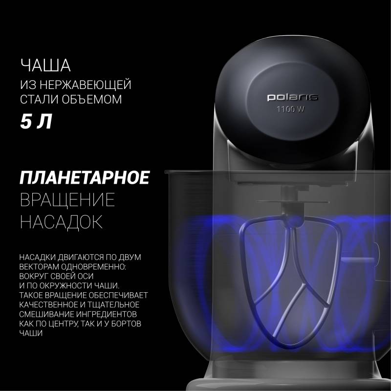 Кухонная машина Polaris PKM 1104 планетар.вращ. 1100Вт белый