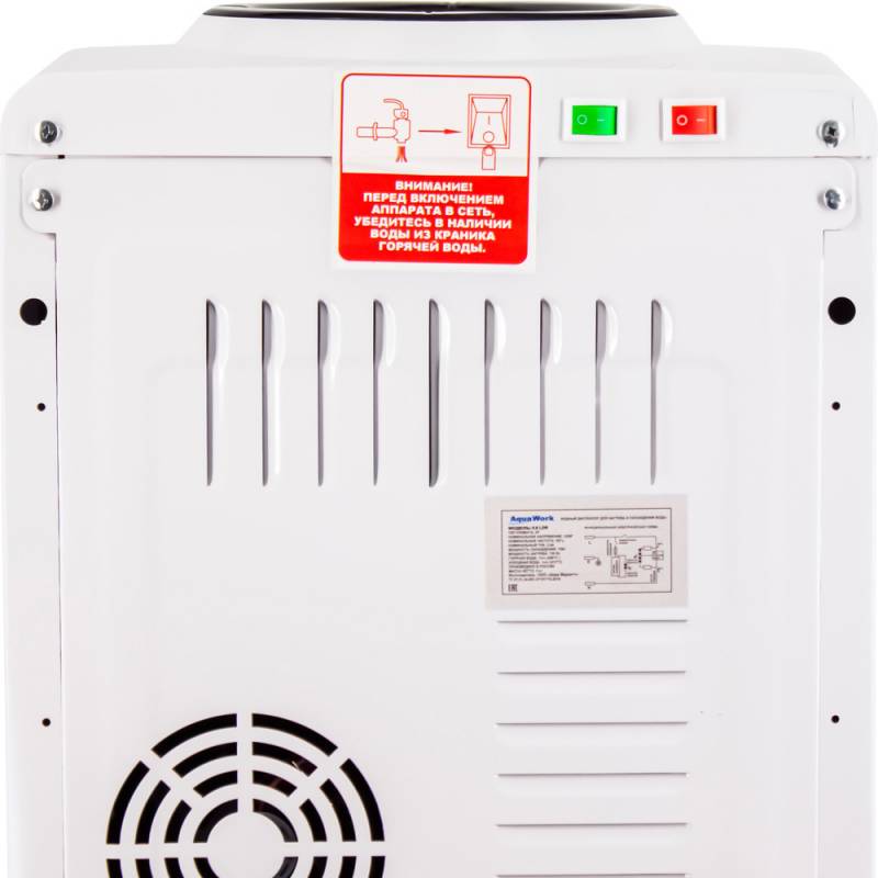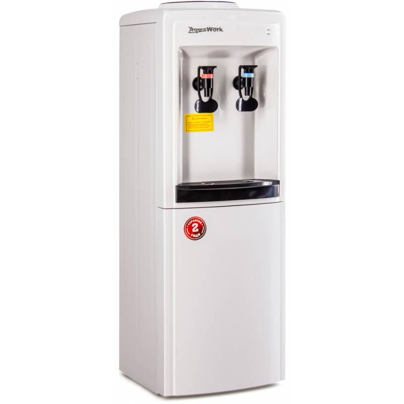 - Небольшой напольный кулер для воды Aqua Work 0.8-LDR с мощным нагревом, электронной системой охлаждения. Высота аппарата несколько ниже обычного для диспенсеров 1 метра - 83,5 см. Нагревает за 1 час порядка 7 литров воды из установленной сверху бутыли до