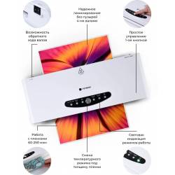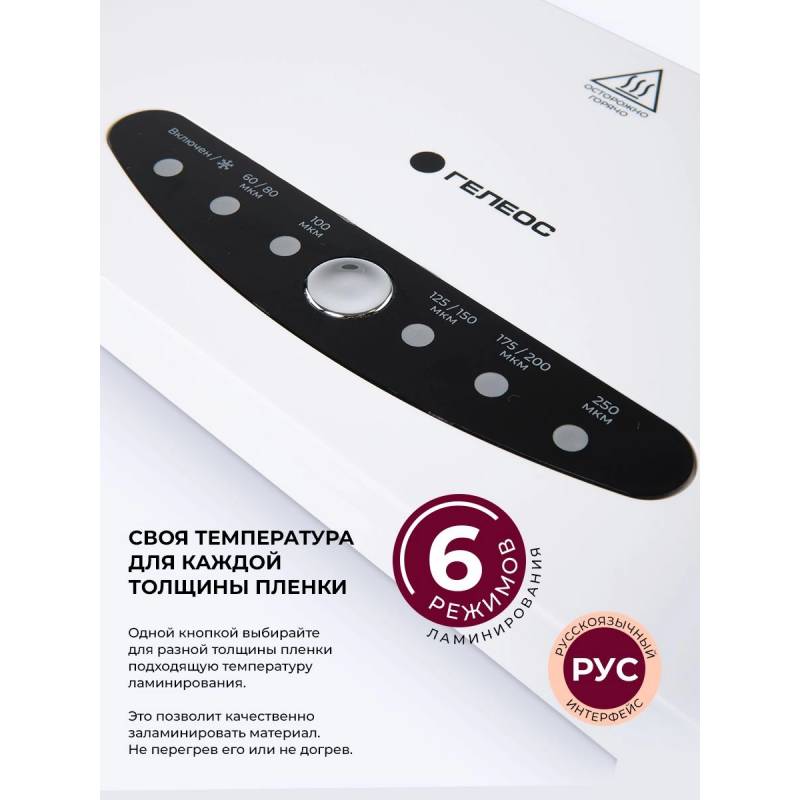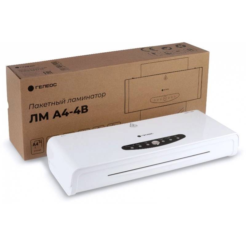 Ламинатор Heleos ЛМА44В белый/черный A4 (60-250мкм) 30см/мин (4вал.) хол.лам. лам.фото реверс