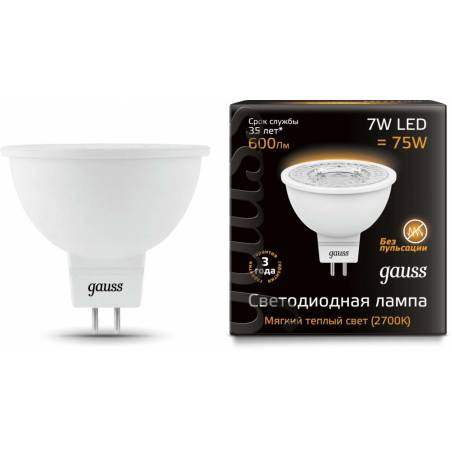 Лампа светодиодная Gauss MR16 7Вт цок.:GU5.3 спот 220B 2700K св.свеч.бел.теп. MR16 (упак.:1шт) (101505107)
