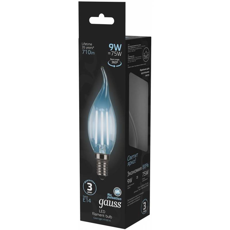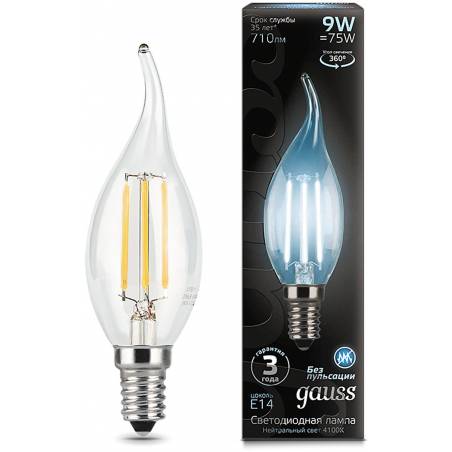 Лампа светодиодная Gauss Filament 9Вт цок.:E14 свеча 220B 4100K св.свеч.бел.нейт. CF35 (упак.:1шт) (104801209)
