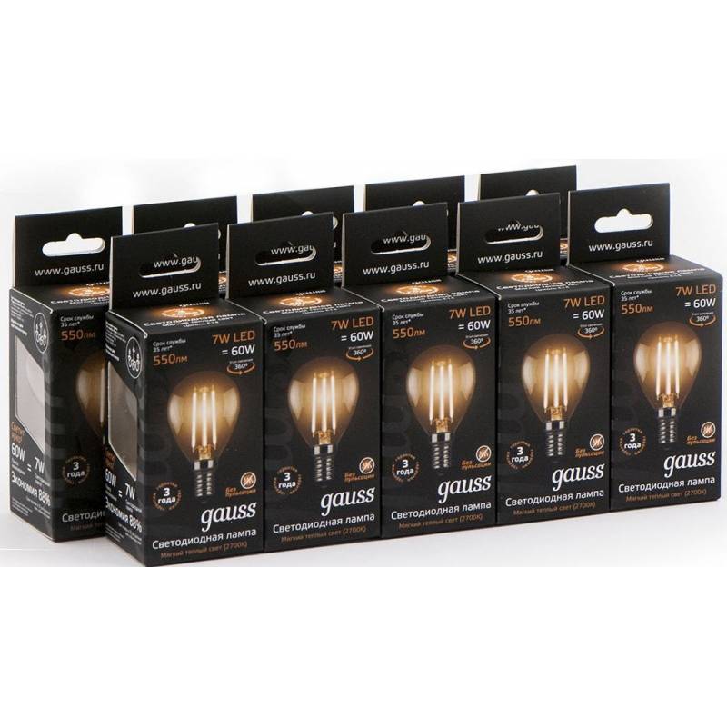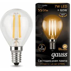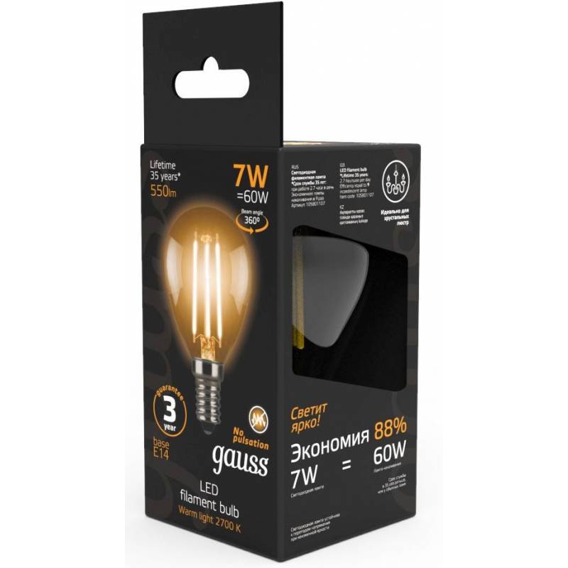 Лампа светодиодная Gauss 7Вт цок.:E14 шар 220B 2700K св.свеч.бел.теп. P45 (упак.:1шт) (105801107)