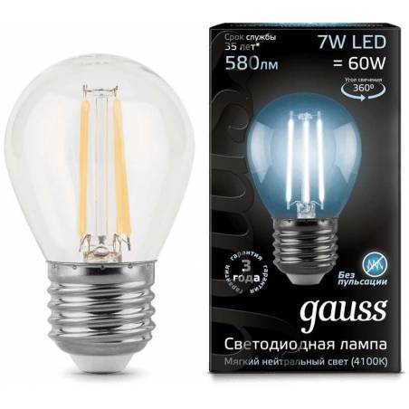 Лампа светодиодная Gauss Filament 7Вт цок.:E27 шар 220B 4100K св.свеч.бел.нейт. P45 (упак.:1шт) (105802207)