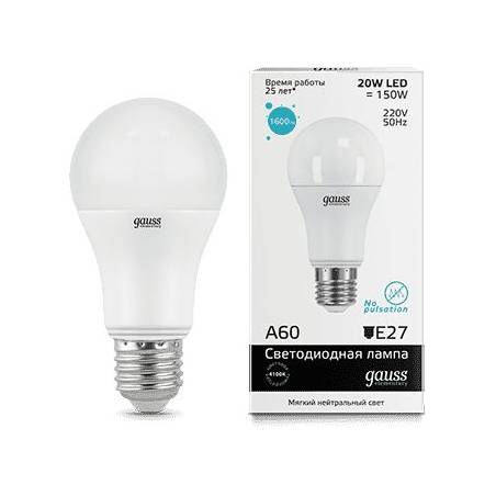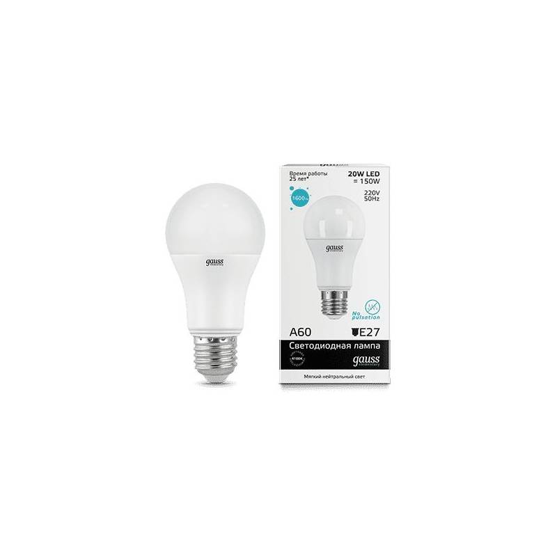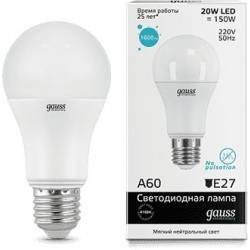 Лампа светодиодная Gauss Elementary A60 20Вт цок.:E27 груша 220B 4100K св.свеч.бел.нейт. A60 (упак.:1шт) (23229)