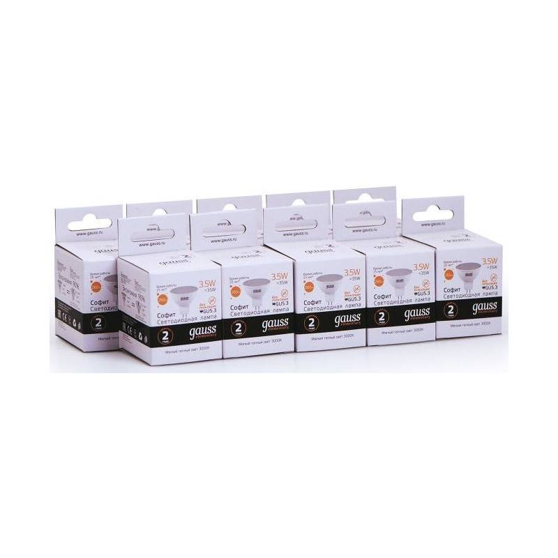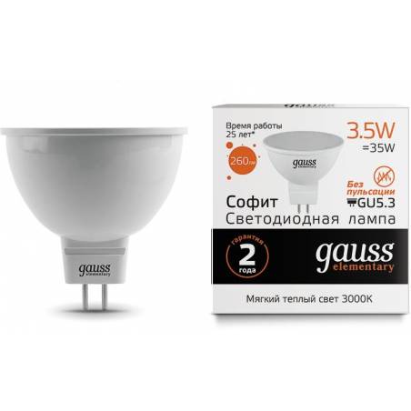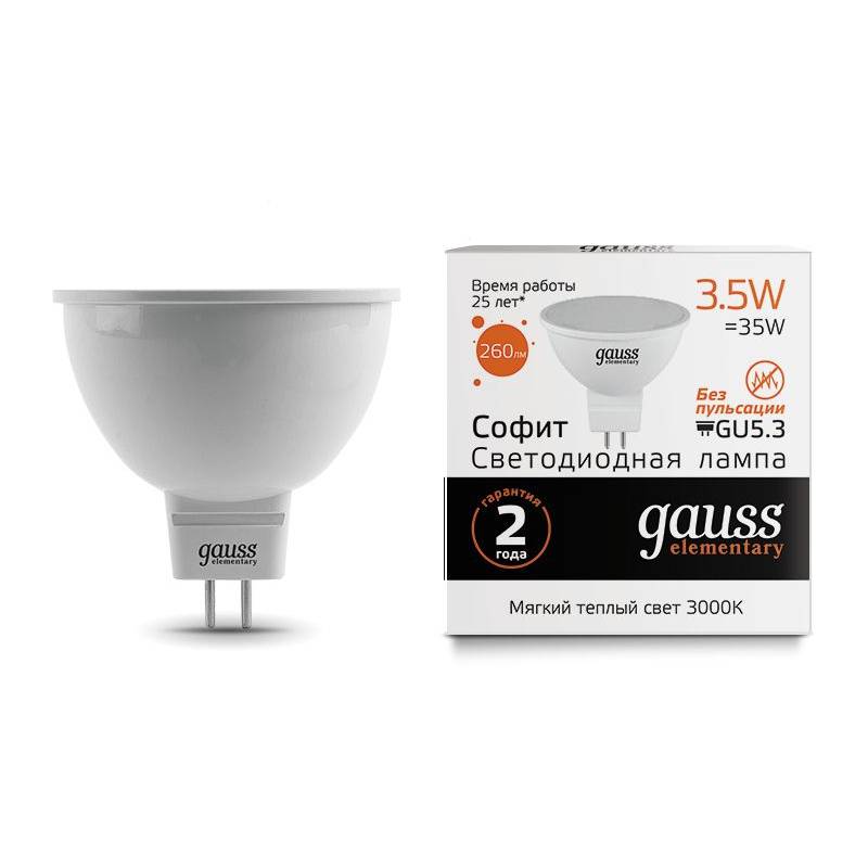Лампа светодиодная Gauss Elementary MR16 3.5Вт цок.:GU5.3 спот 220B 3000K св.свеч.бел.теп. (упак.:10шт) (13514)