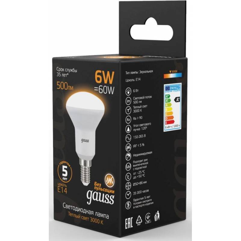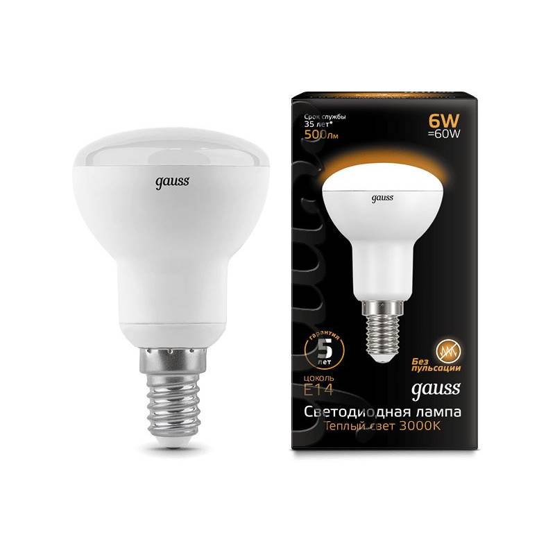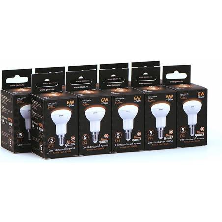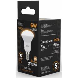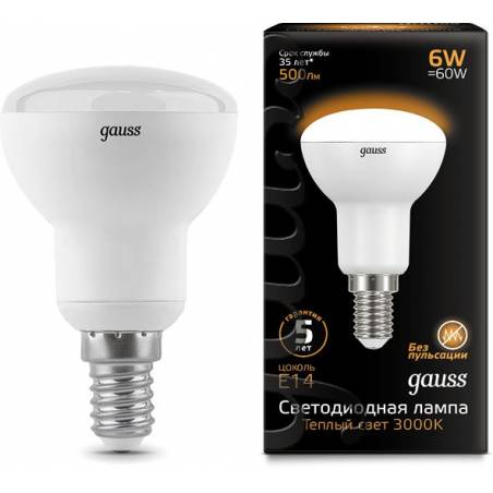 Лампа светодиодная Gauss R50 6Вт цок.:E14 рефлек. 220B 3000K св.свеч.бел.теп. (упак.:10шт) (106001106)