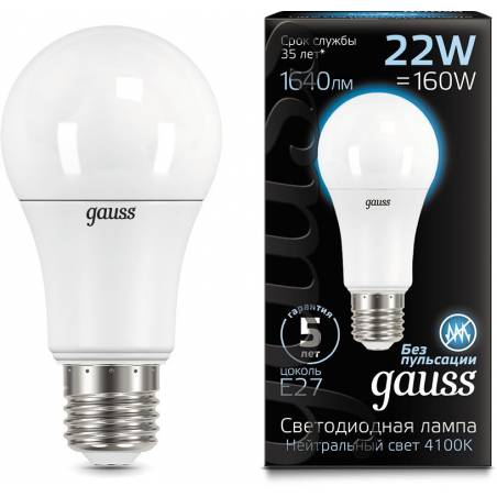 Лампа светодиодная Gauss A70 22Вт цок.:E27 груша 220B 4100K св.свеч.бел.нейт. (упак.:1шт) (102502222)