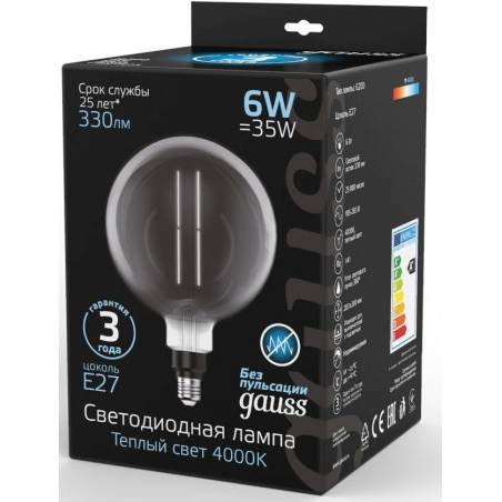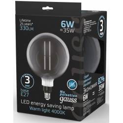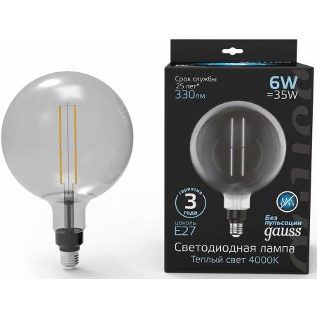 Лампа светодиодная Gauss Filament Vintage 6Вт цок.:E27 шар 220B 4000K св.свеч.бел.нейт. (упак.:1шт) (154802205)