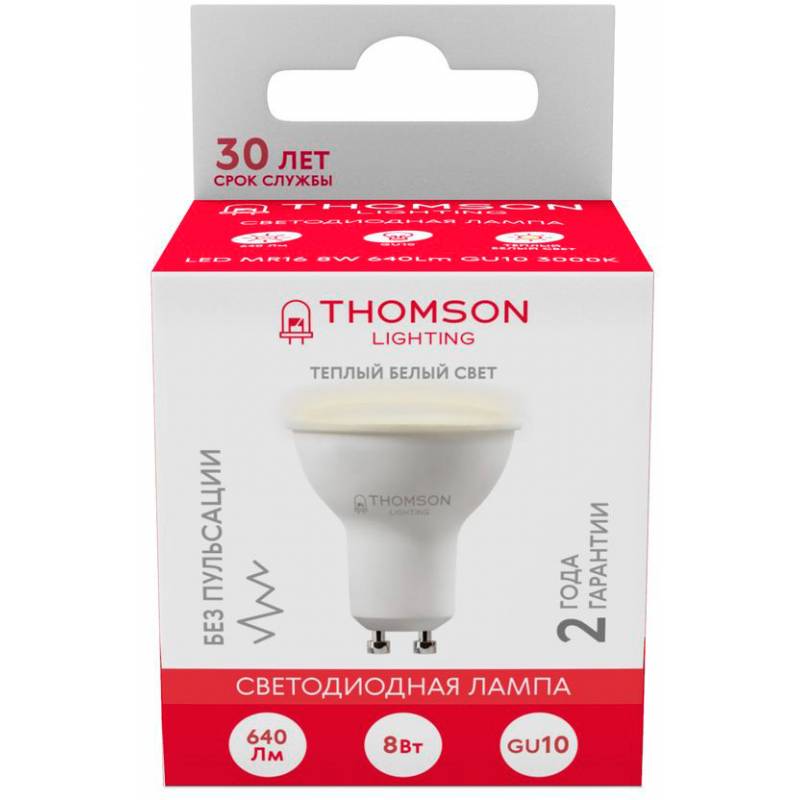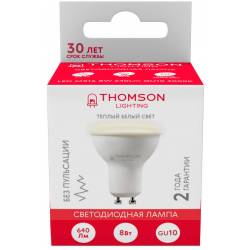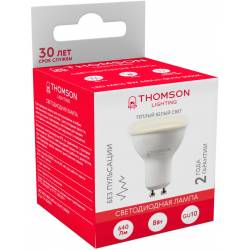 Лампа светодиодная Thomson TH-B2053 8Вт цок.:GU10 полусф. 220B 3000K св.свеч.бел.теп. MR16 (упак.:1шт)