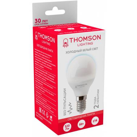 Лампа светодиодная Thomson TH-B2315 6Вт цок.:E14 шар 220B 6500K св.свеч.бел.хол. Globe (упак.:1шт)