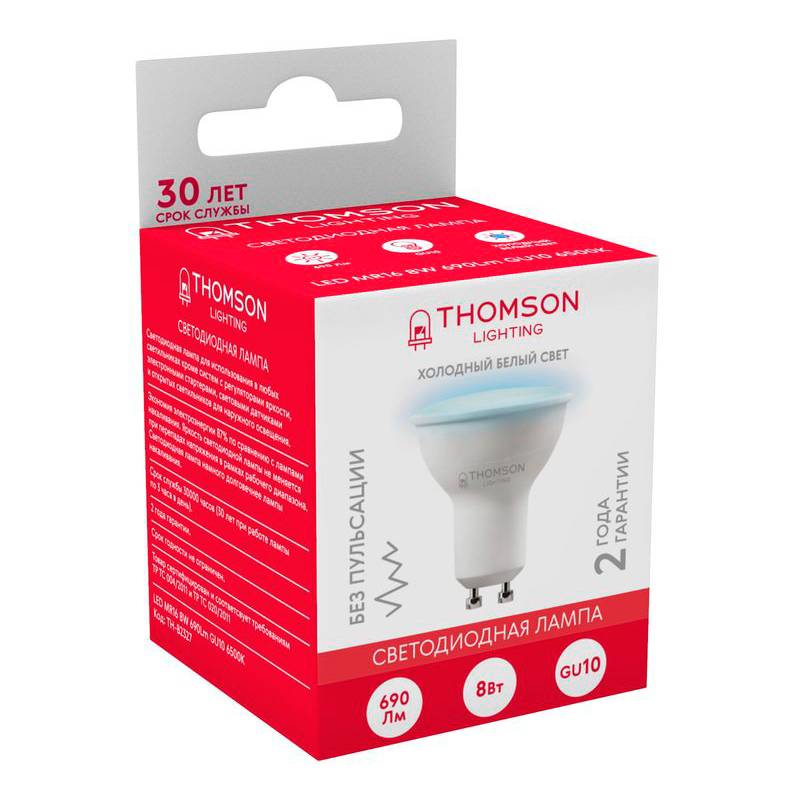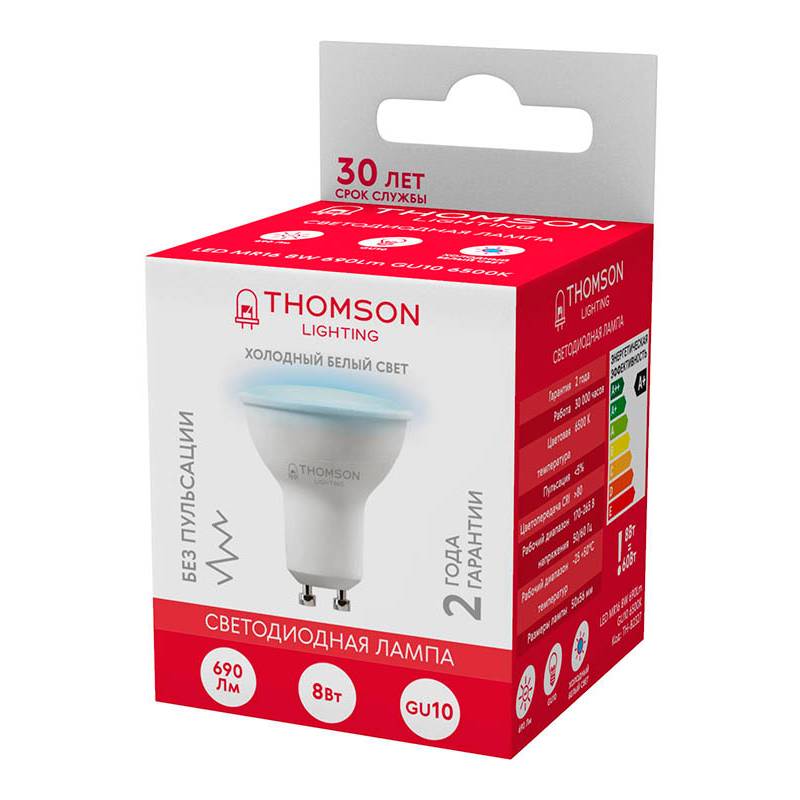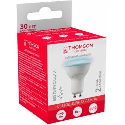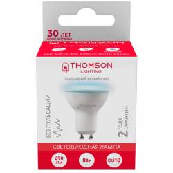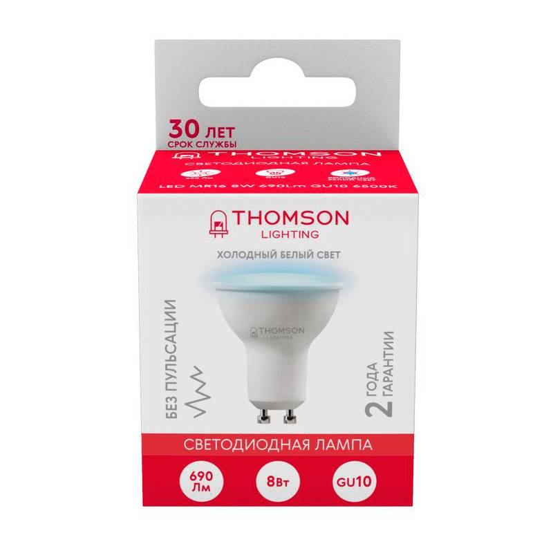 Лампа светодиодная Thomson TH-B2327 8Вт цок.:GU10 полусф. 220B 6500K св.свеч.бел.хол. MR16 (упак.:1шт)