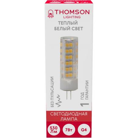 Лампа светодиодная Thomson TH-B4232 7Вт цок.:G4 капсул. 220B 3000K св.свеч.бел.теп. (упак.:1шт)