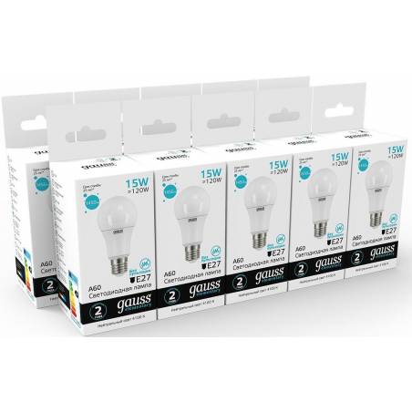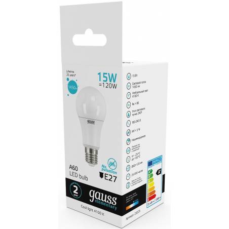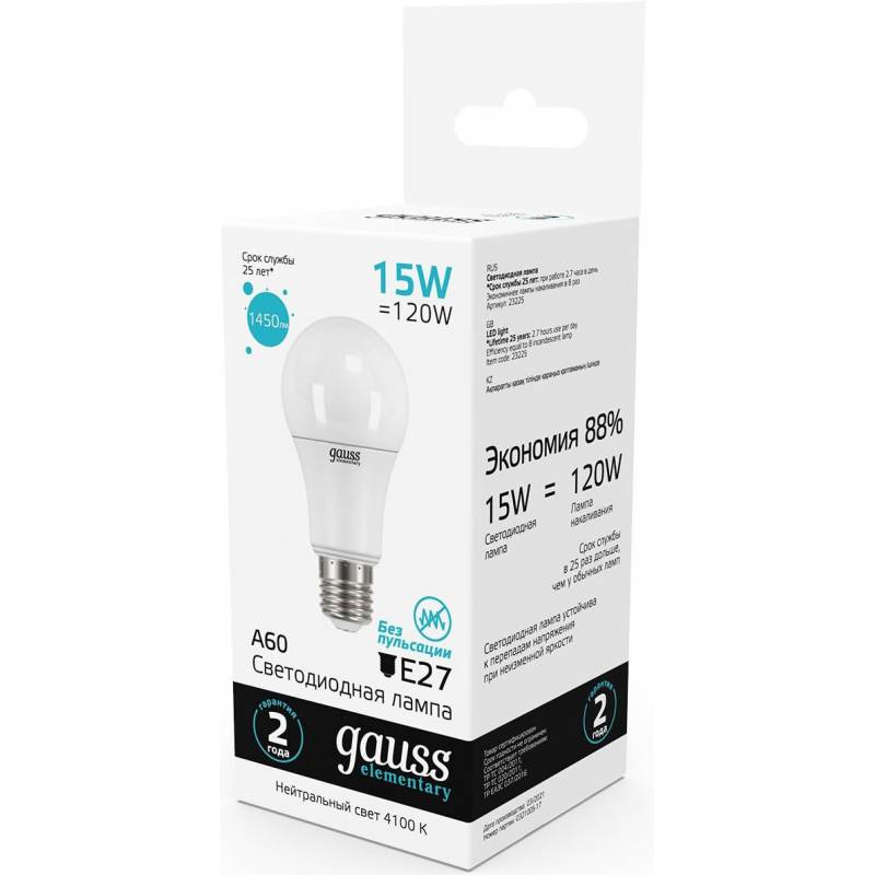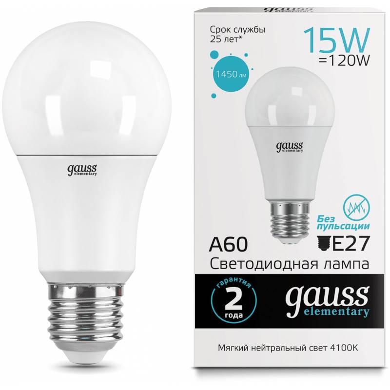 Лампа светодиодная Gauss Elementary 15Вт цок.:E27 груша 220B 4100K св.свеч.бел.нейт. A60 (упак.:10шт) (23225)