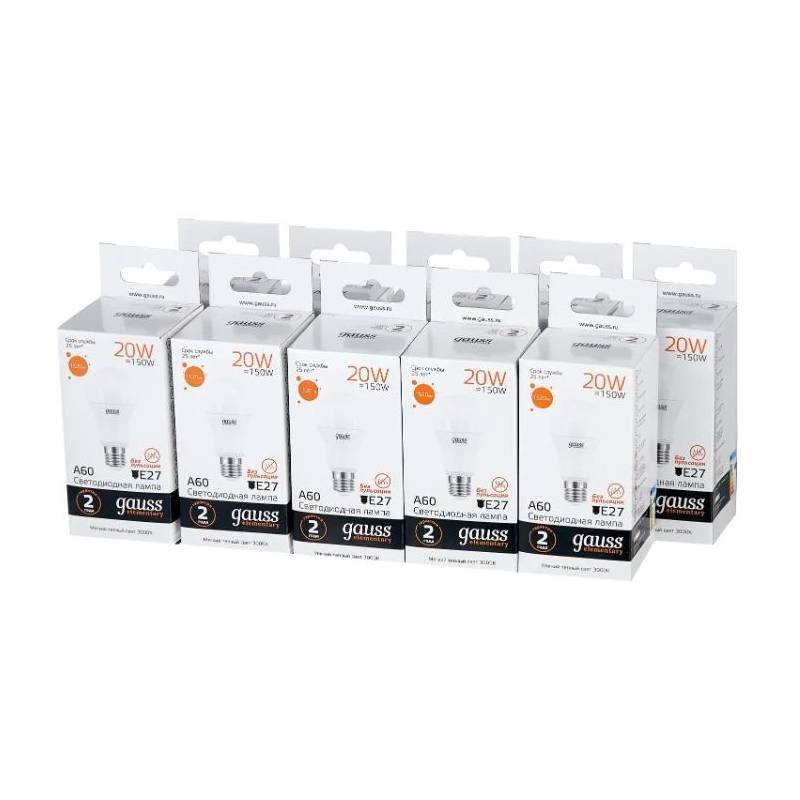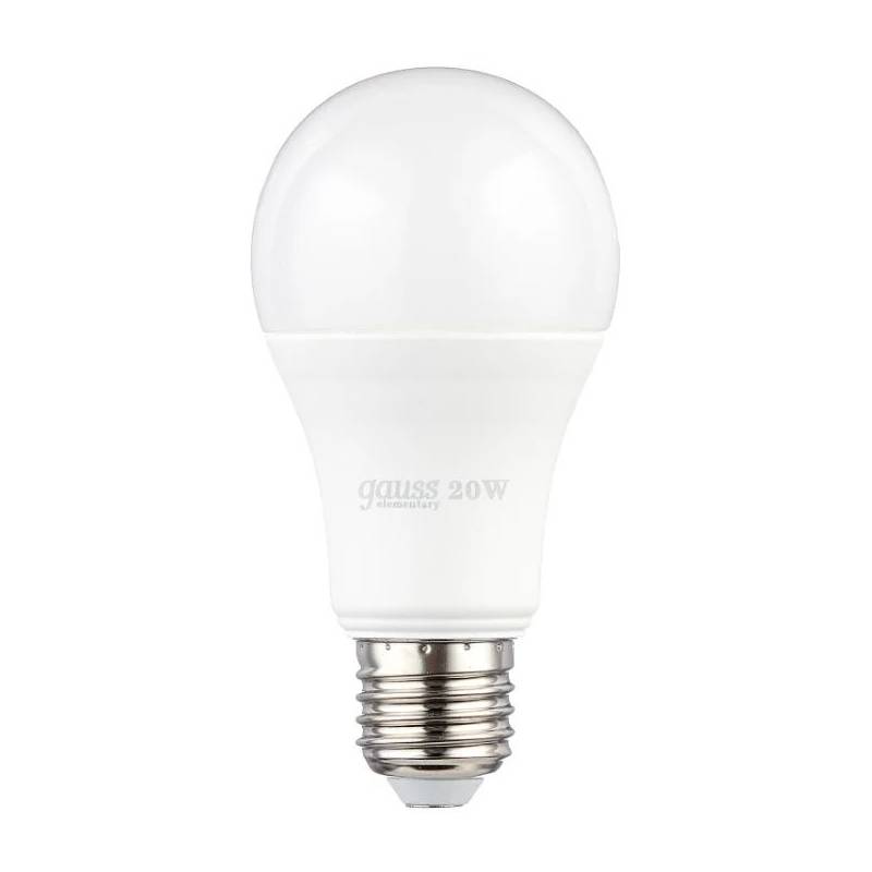 Лампа светодиодная Gauss Elementary 20Вт цок.:E27 груша 220B 3000K св.свеч.бел.теп. A60 (упак.:10шт) (23219)