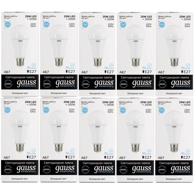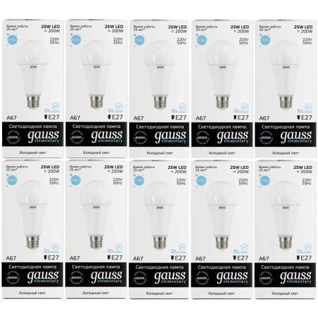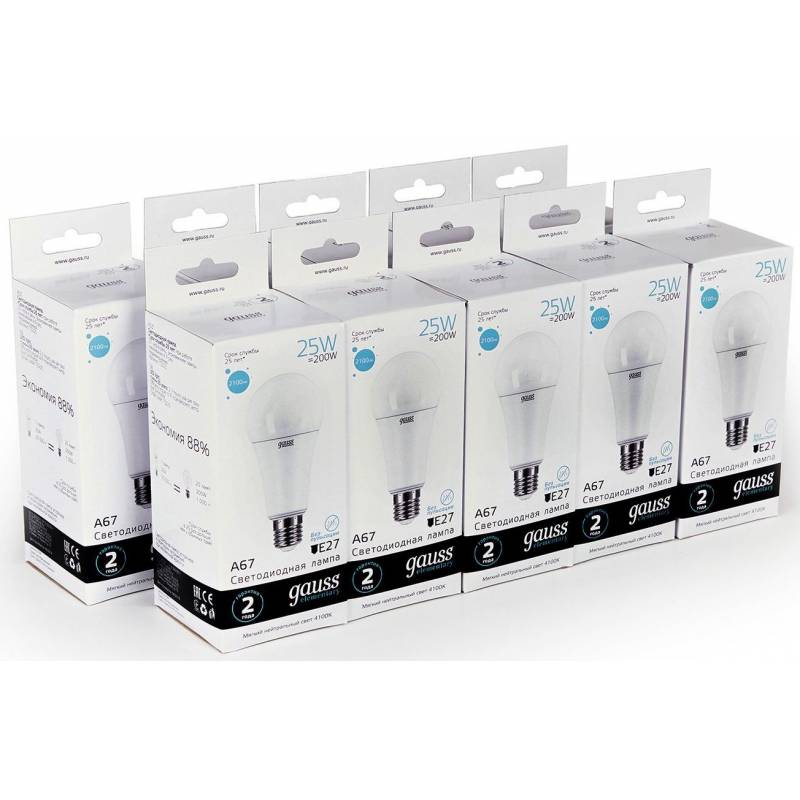 Лампа светодиодная Gauss Elementary 25Вт цок.:E27 груша 220B 4100K св.свеч.бел.нейт. A67 (упак.:10шт) (73225)