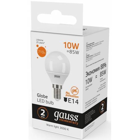 - Светодиодная лампа Gauss - безопасный для здоровья и окружающей среды источник света. Она не пульсирует, мгновенно включается, не содержит ртути и имеет больший срок службы, чем лампы накаливания и КЛЛ, экономичнее ламп накаливания до 10 раз.