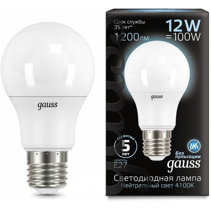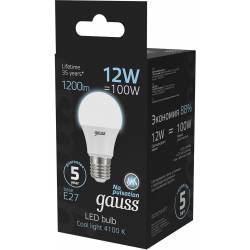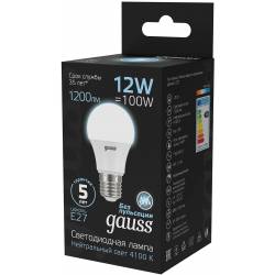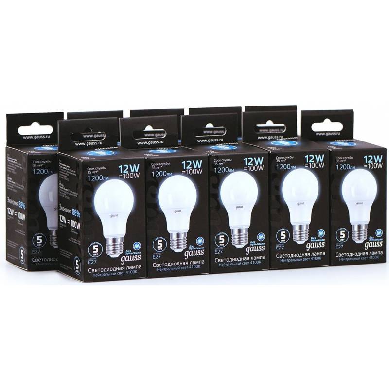 Лампа светодиодная Gauss A60 12Вт цок.:E27 шар 220B 4100K св.свеч.бел.нейт. A60 (упак.:10шт) (102502212)