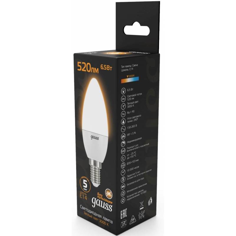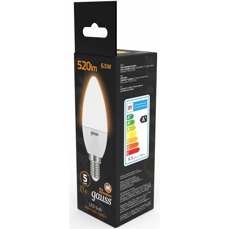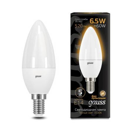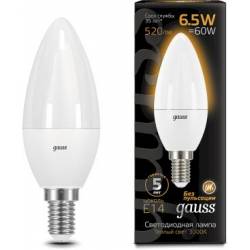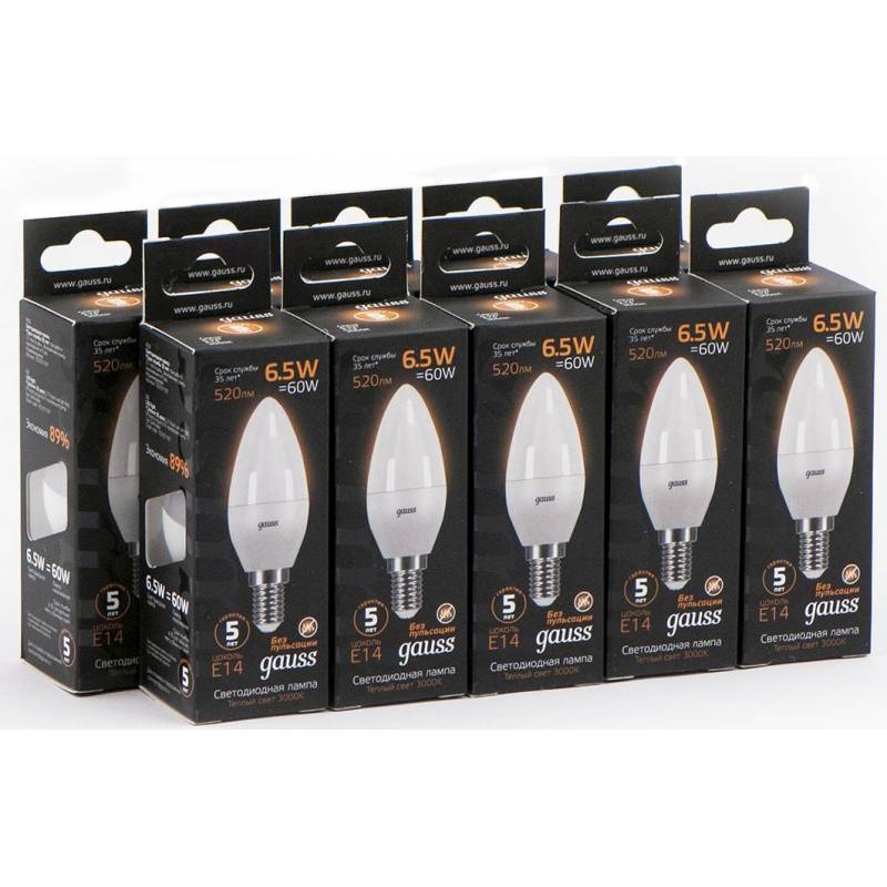Лампа светодиодная Gauss Black 6.5Вт цок.:E14 свеча 220B 3000K св.свеч.бел.теп. C37 (упак.:10шт) (103101107)