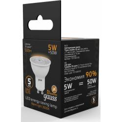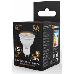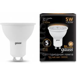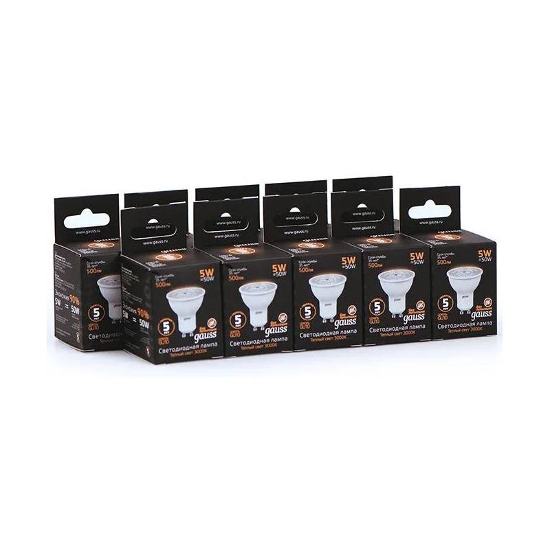 Лампа светодиодная Gauss Black 5Вт цок.:GU10 рефлек. 220B 3000K св.свеч.бел.теп. MR16 (упак.:10шт) (101506105)