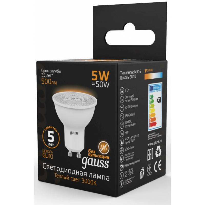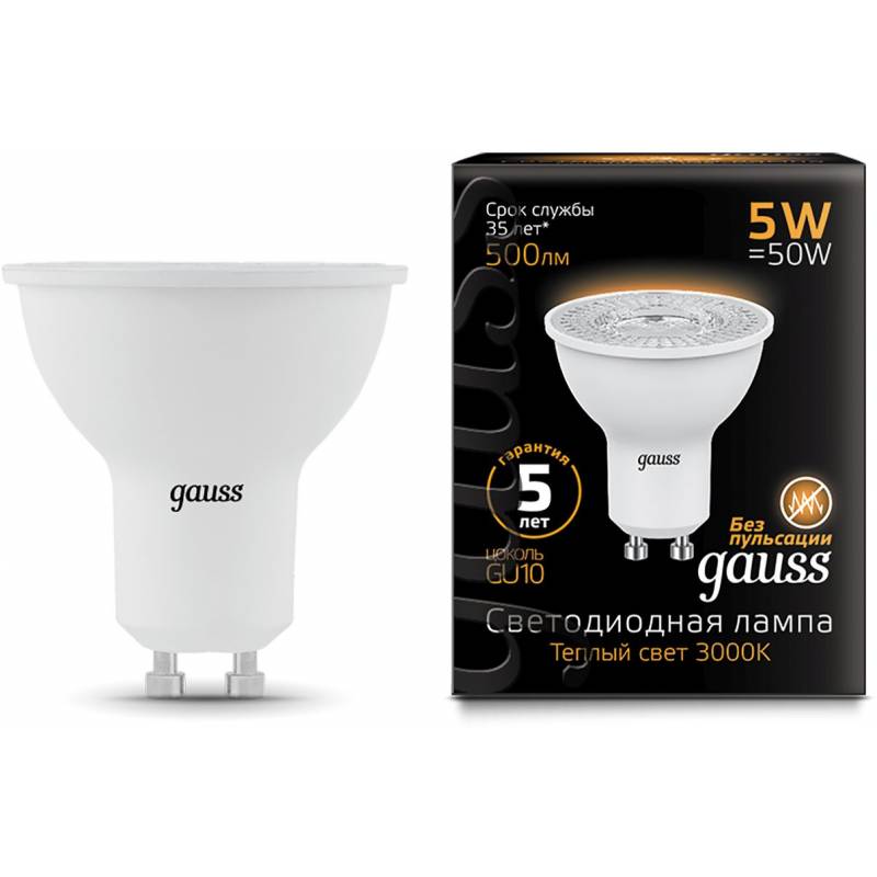 - Светодиодная лампа Gauss - безопасный для здоровья и окружающей среды источник света. Она не пульсирует, мгновенно включается, не содержит ртути и имеет больший срок службы, чем лампы накаливания и КЛЛ, экономичнее ламп накаливания до 10 раз.