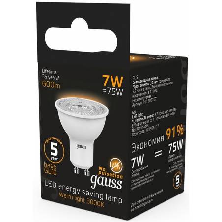 - Светодиодная лампа Gauss - безопасный для здоровья и окружающей среды источник света. Она не пульсирует, мгновенно включается, не содержит ртути и имеет больший срок службы, чем лампы накаливания и КЛЛ, экономичнее ламп накаливания до 10 раз.