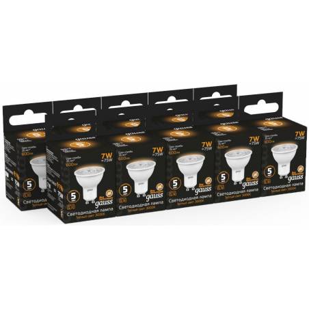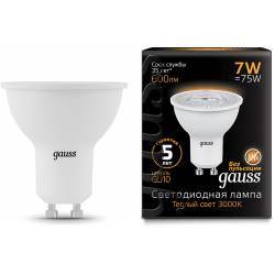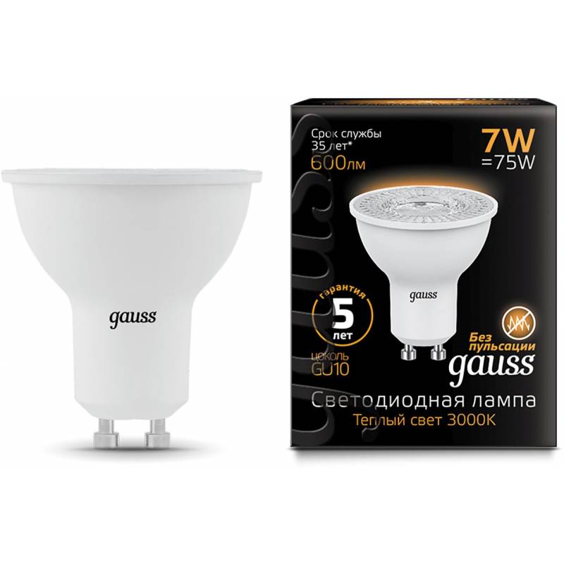 Лампа светодиодная Gauss Black 7Вт цок.:GU10 рефлек. 220B 3000K св.свеч.бел.теп. MR16 (упак.:10шт) (101506107)