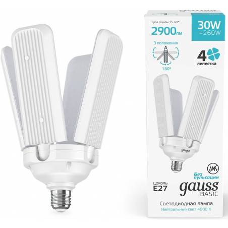 Лампа светодиодная Gauss Basic 11732232 30Вт цок.:E27 клевер 220B 4000K св.свеч.бел.нейт. (упак.:1шт)