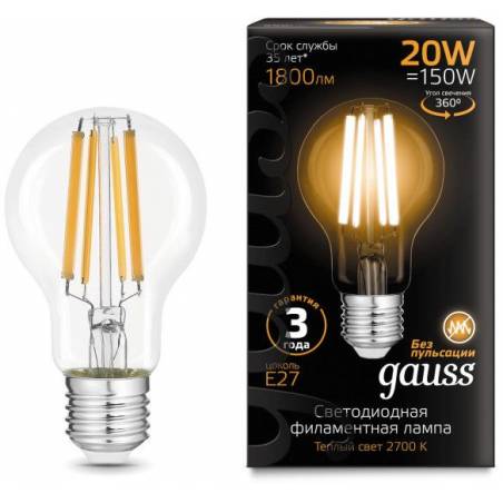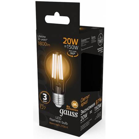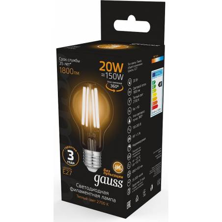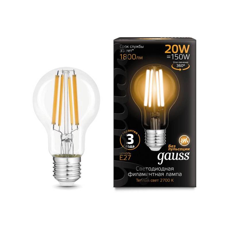 Лампа светодиодная Gauss Filament 102902120 20Вт цок.:E27 груша 220B 2700K св.свеч.бел.теп. (упак.:1шт)